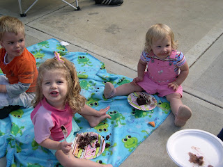 We had about 10 of her friends over for a little party in the backyard! It was lots of fun! We tried to play Blue-Blue-Pink (a rendition of Duck-Duck-Goose), but it lasted about 1 minute and wasn't real successful! Oh Well! Another year!